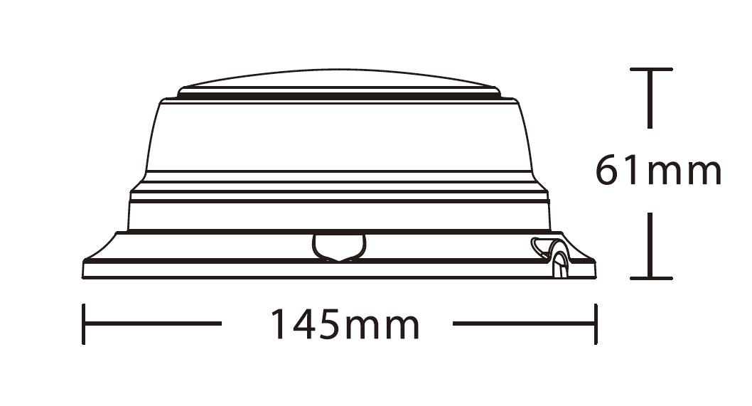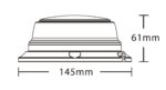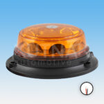 Popis produktu: Výstražný LED maják – pevné uchycení, 3x šroub. 12×1 W LED. Možnost přepínání světelných funkcí – jeden záblesk, dvojitý záblesk, čtyřnásobný záblesk, rotace. 4x světelný mód. Rozměry: výška – 61 mm, průměr – 145 mm. Homologace R65. Voděodolnost IP 67. -30°C až + 60°C.